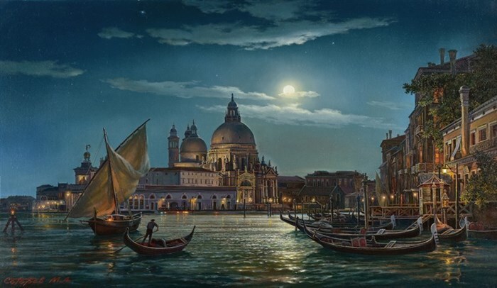 "Откройте магию ночной Венеции вместе с Михаилом Сатаровым! В его «Итальянской ночи» каждый уголок города оживает в свете луны, а романтика старинных улочек наполняет сердце теплом. Это путешествие во времени и пространстве идеально подойдет тем, кто ценит искусство, красоту и незабываемые впечатления."Копия живописи картины художника Михаила Сатарова.