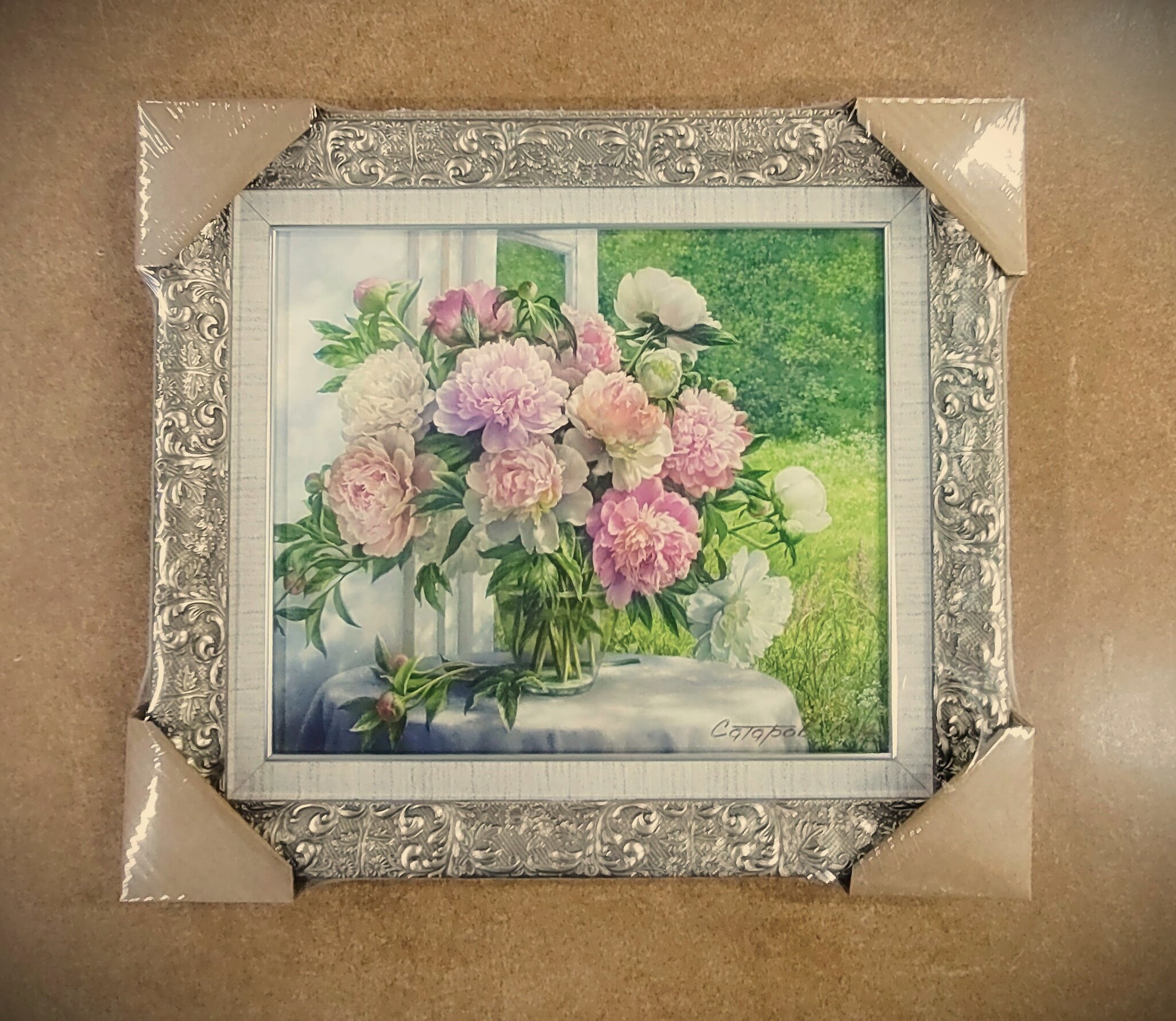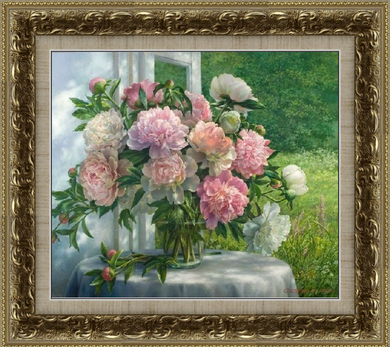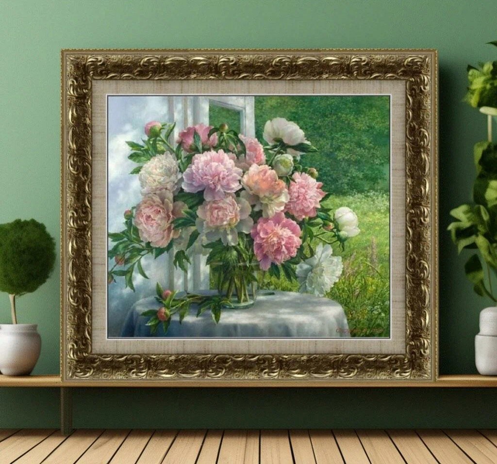 Картина в раме "Пионы у окна" - это произведение искусства, которое станет ярким акцентом в интерьере и подчеркнет ваш вкус. Копия живописи картины художника Михаила Сатарова. Это репродукция, напечатанная на полусинтетическом холсте экосольвентными чернилами. Изображение не выцветает, не выгорает. Материал изображения холст. Багетная рама из пластика. Есть фурнитура для подвеса. Обязательной сертификации не подлежит.
