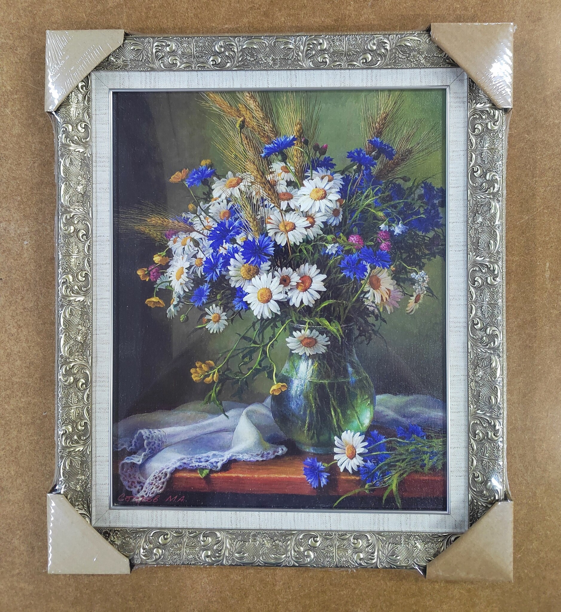 Картина в раме "Полевые цветы". Копия живописи картины художника Михаила Сатарова.Копия живописи картины художника Михаила Сатарова. Это репродукция, напечатанная на натуральном холсте эко-сольвентными чернилами. Изображение не выцветает, не выгорает. Материал изображения холст. Багетная рама из пластика. Есть фурнитура для подвеса. Обязательной сертификации не подлежит.